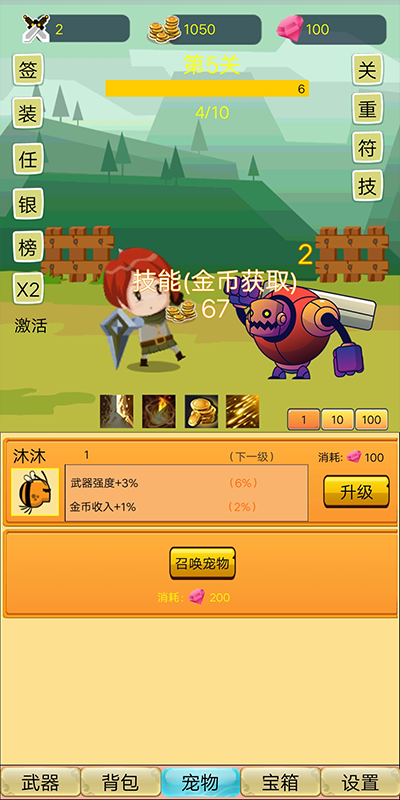 前期先把所以寵物開啟,只平均升帶有武器強(qiáng)度的寵物。