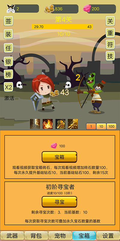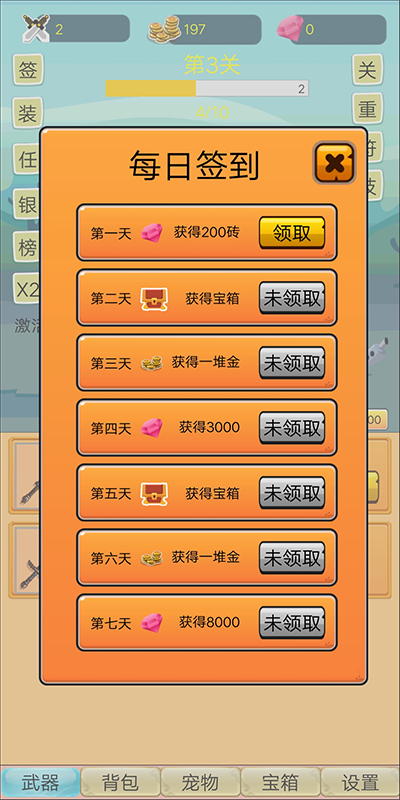2、有武器、裝備、寵物等等系統(tǒng)等你來探索,離線也有獎勵,離線獎勵有驚喜;