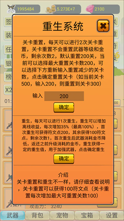 第一次重生,會大幅度降低武器升級的金幣消耗,第一次重生,沖的關(guān)卡越高效果越好。