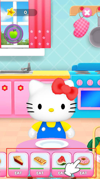3、凱蒂貓出來之后,點擊蘋果可以給它喂食;
