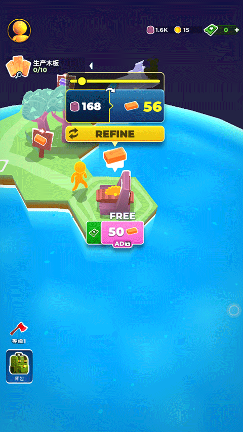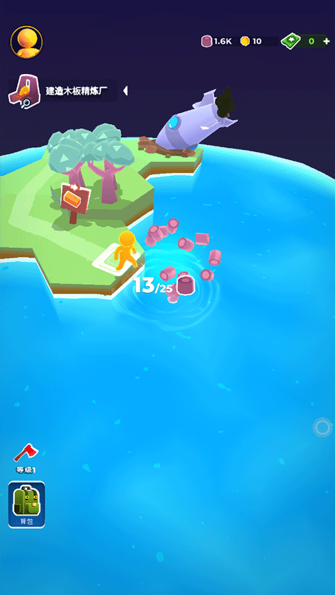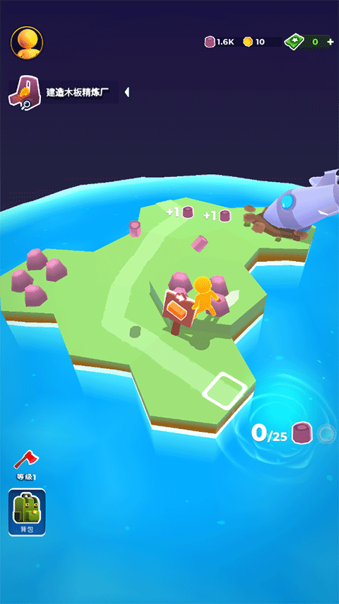 2、將獲取的資源丟在空余的地方即可制造出一片新的土地,這樣就有更多的木材可以砍了。