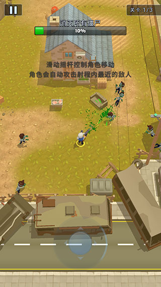 2、滑動(dòng)搖桿控制角色移動(dòng),角色會(huì)自動(dòng)攻擊射程內(nèi)最近的敵人。