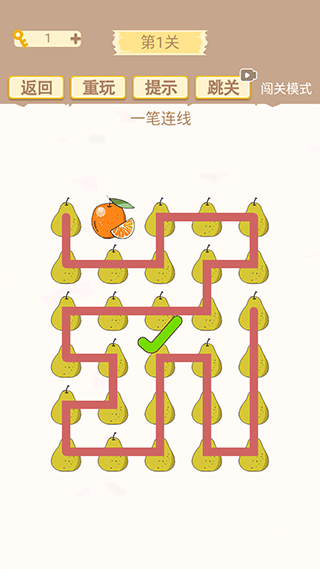 2、來到第一關(guān),需要將這些梨一筆連成線;
