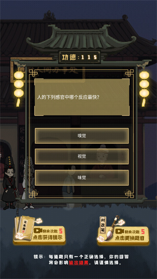 5、后面遇到的所有鬼都會跟你進行互動答題,題目還是比較難的;