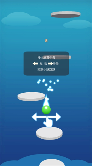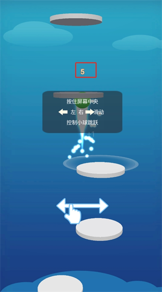 2、通過向左或向右滑動屏幕可以控制小球的前進方向。