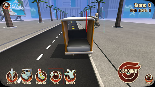 根據(jù)選擇的不同車型,木頭人可以擺的姿勢(shì)也不一樣,姿勢(shì)基本上可以分為車內(nèi)和車外兩種類型,也許玩家會(huì)覺(jué)得在車外的姿勢(shì)更加風(fēng)騷和有趣,但是小編推薦最好選擇在車內(nèi)的姿勢(shì)。因?yàn)槿绻x擇木頭人風(fēng)趣地掛在車外,木頭人很容易就會(huì)在中途掉下,不能到達(dá)玩家預(yù)期的位置,從而獲得的分?jǐn)?shù)也會(huì)很少,相對(duì)的,在車內(nèi)的姿勢(shì)則會(huì)更加保.險(xiǎn)。