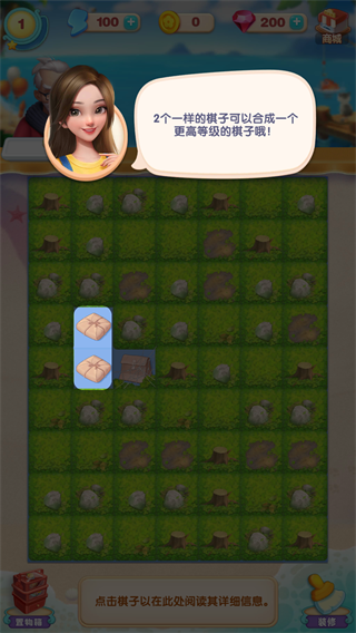 1、餐廳養成記是一種結合了模擬經營和消除類玩法的游戲類型,游戲的玩法很簡單,2個一樣的棋子可以合并成一個更高等級的棋子,通過合并可以不斷的解鎖被遮住的元素