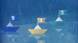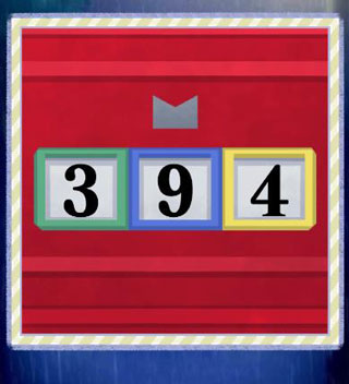 接著往里面望去你會在房子左側發現一個漏著水的坑里漂浮著三只帶著數值的紙船(顏色為:藍9.黃4.綠3)。
