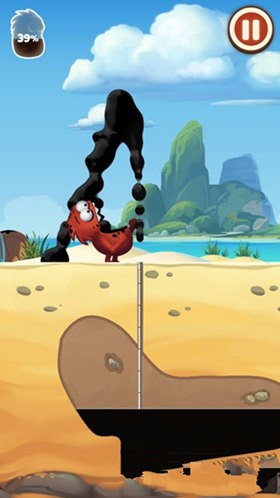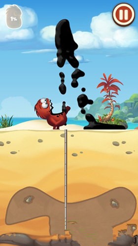 3、如果導管剛好在石油中,那么就會噴出石油,我們就按住屏幕左右兩邊控制小怪物長大嘴去收集這些噴出的石油。