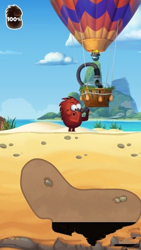 4、屏幕左上角會有小怪物吸收石油的程度,當收集滿以后,熱氣球就會出現,我們將走過去就能將石油吐出去,這樣就完成任務了。