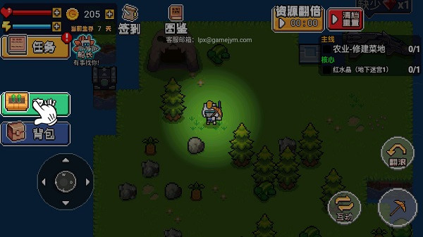 3、你需要及時收集食物和水,確保你的健康狀況,各種簡單的操作是非常重要的。否則就不會有探索;
