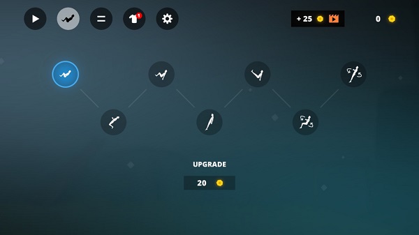 1、游戲玩法主要依靠玩家按壓屏幕的時間來控制,在起跳階段,你可以通過控制按壓時間進行起跳,在起跳后,同樣控制按壓時間進行空中轉體。