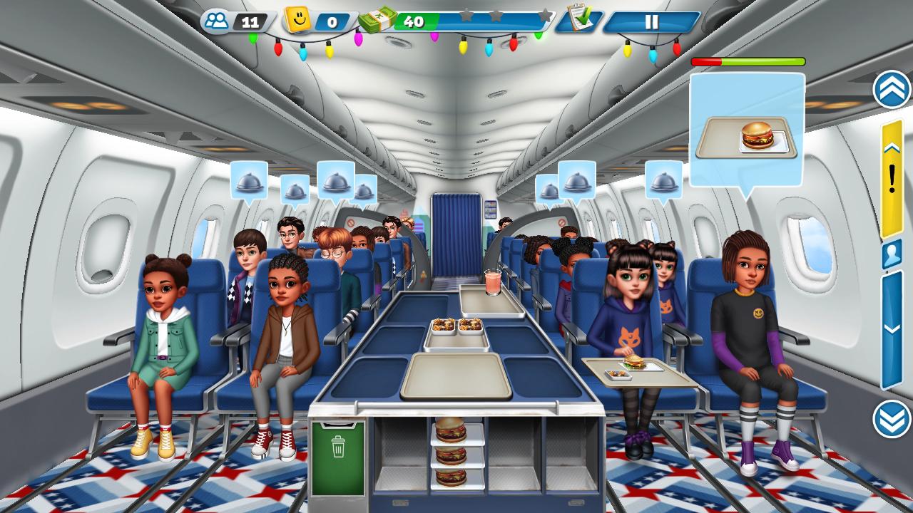 2、烹飪美味的餐點和甜點,并在這個免費的高度上癮的時間管理烹飪游戲中將其用于商業航班;