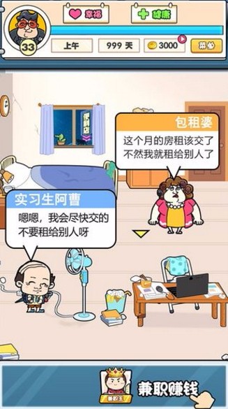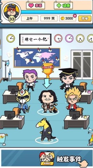 我們這班打工仔是一款模擬職場(chǎng)生存類的休閑小游戲,游戲中玩家將體驗(yàn)從實(shí)習(xí)生到社會(huì)精英,乃至是禿頭老板的職場(chǎng)生活當(dāng)中,游戲分別提供了多種角色可以挑選,每個(gè)角色都有特殊的體制,不同的技能,以及綁定人物身上的特殊事件,隨時(shí)光流失,你會(huì)經(jīng)歷各種事件,而你的每一次選擇都會(huì)對(duì)人物屬性帶來(lái)變化,積少成多,量變將會(huì)產(chǎn)生質(zhì)變,但你的目標(biāo)只有一個(gè),就是通過(guò)最終考核。