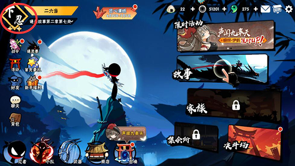 2、接下來回到游戲主界面,我們在左上角的忍者級別