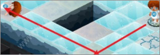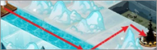 走中間的冰凍道路,落水后將清除掉最初河中的主角石像。