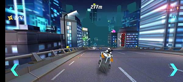 1、游戲模式主要是以駕駛摩托車進行比賽,超越對手,盡量行駛的距離更遠。
