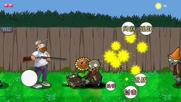 2、游戲將以橫版新玩法呈現給玩家,操作戴夫顯示不同的戰斗方式,消滅更多的僵尸。