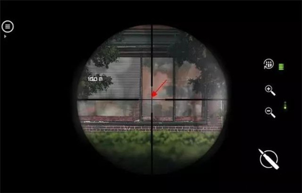 任務玩法:此關的風力更大,小伙伴們應該在兩個綠色的瞄準點交叉的位置上舉槍射擊才可。下圖中兩個紅色箭頭的交匯處就是當前狙擊鏡下所能射擊到的方位。利用這個特性,擊殺掉走路的上尉即可。