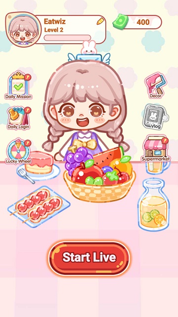 4.給可可穿上超級可愛的衣服,從兔子娃娃套裝到閃閃發光的美人魚公主套裝,一切都有!您還可以用各種裝飾品裝飾您的直播室。