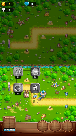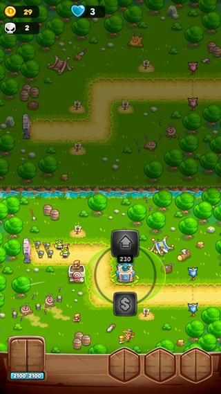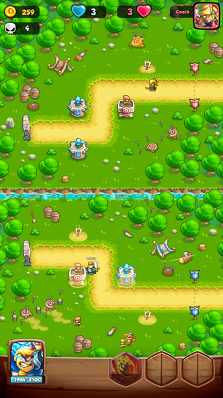 1、動態塔防布局:在隨機生成的敵人路徑上部署箭塔、魔法塔、炮塔等,結合地形(如狹窄通道、高地)優化防御效率。