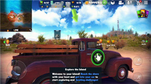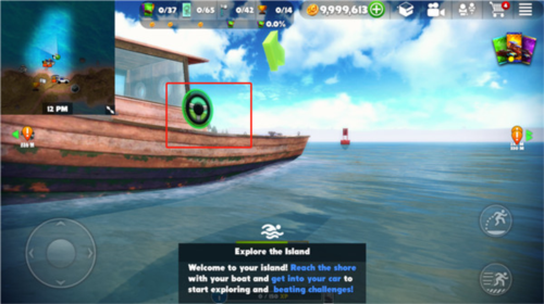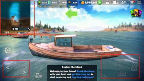 4、然后根據(jù)藍(lán)色方向標(biāo)將船開至岸邊,然后上車。