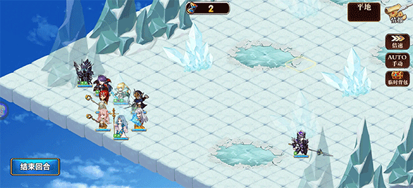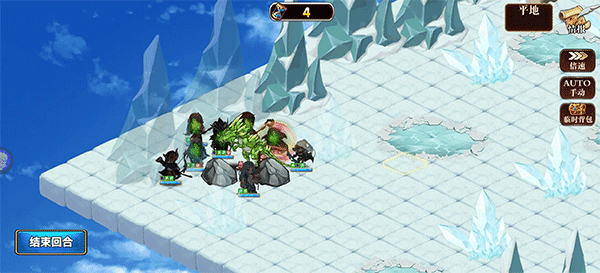 4、地龍出現(xiàn)后,先用鐵甲減少其防御,精靈施展暈眩技能,若未成功則用石頭圍住敵人,預(yù)計(jì)兩回合內(nèi)擊殺。鐵甲和摩爾保留大招,吸血鬼留有兩個(gè)格子的攻擊,土法則保留暈眩技能,擊敗后娜米補(bǔ)充攻擊,站位如下。