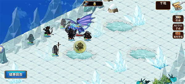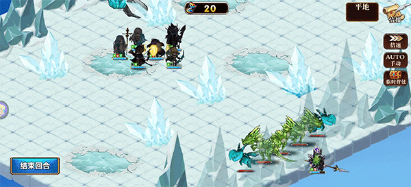 6、鐵甲引導(dǎo)冰龍,土法與精靈協(xié)同暈眩冰龍,其余角色攻擊小龍,站位如下。