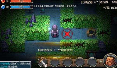 用匕首殺一刀獅(一刀獅幾乎打不過),又能拿到2塊地板。打死右邊的幽魂可以獲得它身上有1把鑰匙。邊上有個鋤頭,都拿到后可以去下圖位置開寶箱,在鑰匙不夠的情況下,玩家可進2次開啟寶箱。