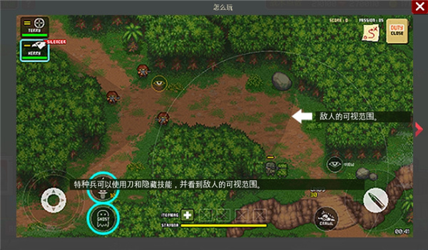 特種兵可以使用刀和隱藏技能,并看到敵人的可視范圍。