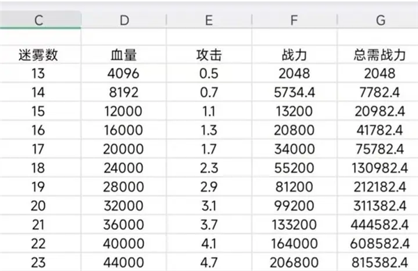 通過(guò)查表可得,這個(gè)屬性可通過(guò)20線(xiàn)迷霧。通過(guò)對(duì)戰(zhàn)力計(jì)算的理解,也能更加好的規(guī)劃自身成長(zhǎng)路線(xiàn)。