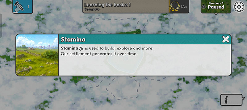 2、體力(stamina)用于建造、探索等。定居點會隨著時間的推移產生體力。