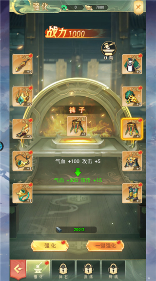 使用強(qiáng)化石進(jìn)行裝備等級提升。