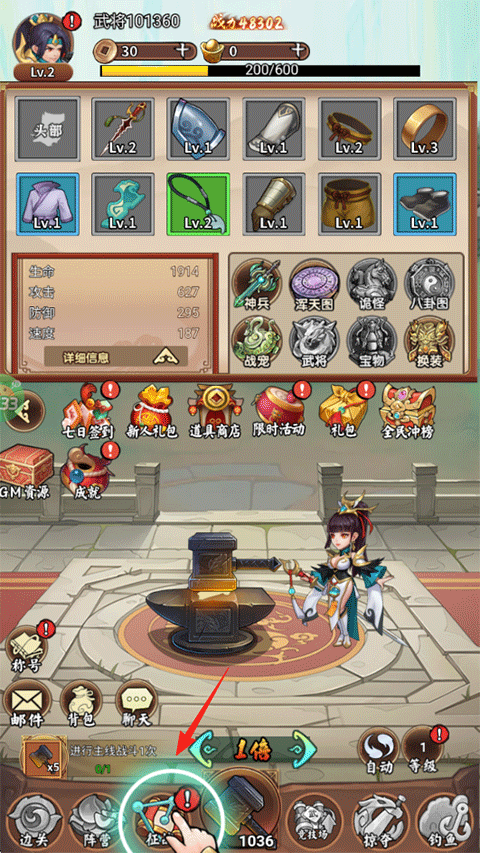 1、進(jìn)入兵馬俑手游,點擊錘子進(jìn)行打鐵刷裝備。