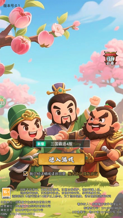 1、打開兵馬俑0.05折三國免費版,登錄賬號并選擇區(qū)服后點進(jìn)進(jìn)入游戲;