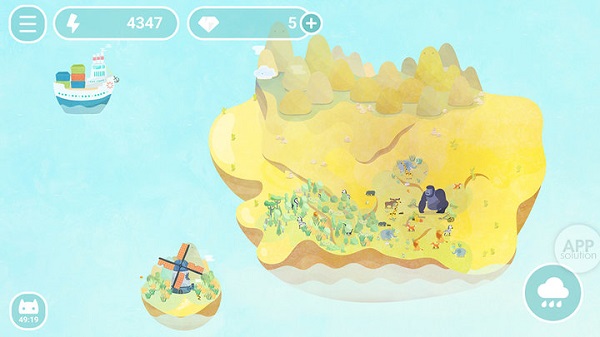 閑來無事時,打開游戲,調節下天氣,下絲絲細雨,轉動風車獲取下雨所需要的能量,給你的小島帶來一片綠衣。每當你發現新物種都會有一份激動吧!如果你偷懶了沒有給小島降雨,那么草原的衰退、動物的滅絕則是對你的懲罰。