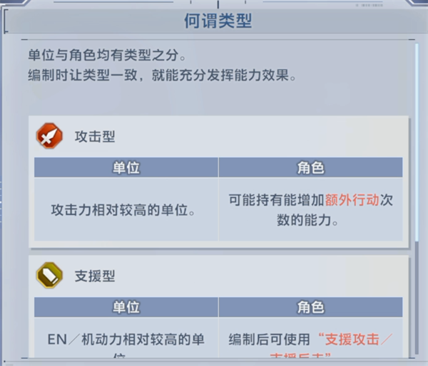 角色的選擇就是建立在機(jī)體選擇之上,首先,角色和機(jī)體都有三種類型,攻擊、支援、耐久,選擇角色一般要保持角色類型和機(jī)體類型一致。
