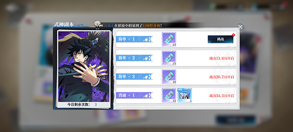 3、隨著你的戰力不斷提升,在式神副本中挑戰更高級的難度副本,可以獲得更高品質的式神碎片,每天挑戰的次數記得一定要完成,產出的材料性價比很高,就算花費鉆石完成也是必須的。