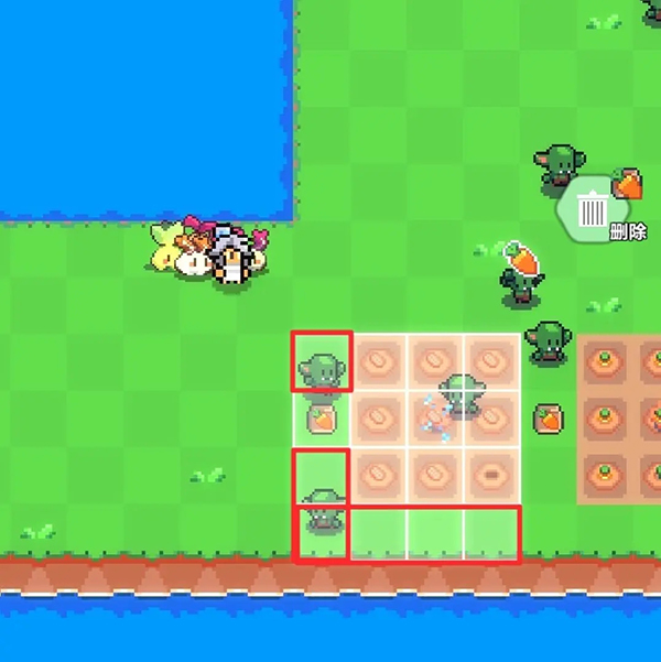 5、假設(shè)我們要將農(nóng)作物移動到圖中紅色大方塊區(qū)域,則灑水器應(yīng)該處于紅色小方塊區(qū)域。