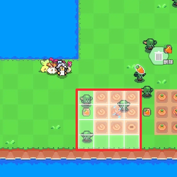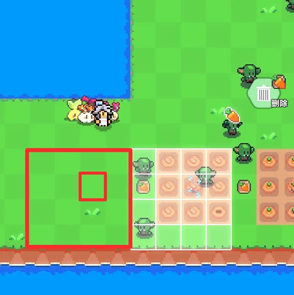 7、先放置農(nóng)作物,使紅色方框位于之前提及的可以放置灑水器區(qū)域即可(不一定必須為圖上位置)