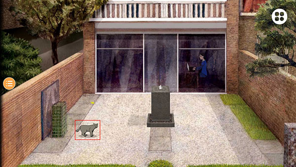 6、最后點擊噴泉上的【貓】,女人把貓抱到圍墻上,本章節通關。