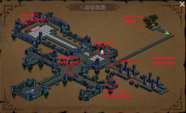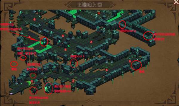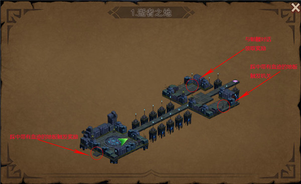 1、踩中帶有血跡的地板觸發獎勵,與骷髏對話領取獎勵,踩中帶有血跡的地板觸發機關。
