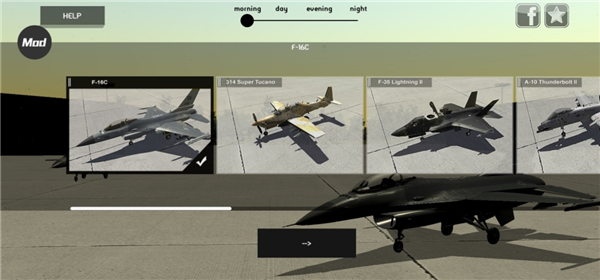 1、下載進入噴氣式戰斗機模擬器游戲,選擇你想玩的戰斗機;