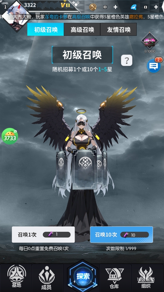 3、進入游戲后會有新手引導教程,跟著指引點擊召喚按鈕,就能召喚英雄加入隊伍。