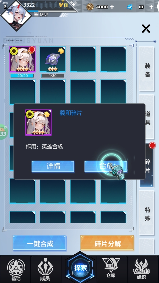 7、若獲取到英雄碎片,要記得通過合成碎片來獲得完整英雄,壯大你的戰隊。