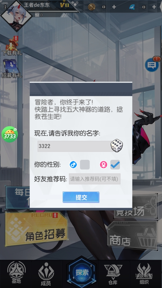 2、接下來創建角色,設置喜歡的名字和性別,打造專屬于你的戰斗身份。