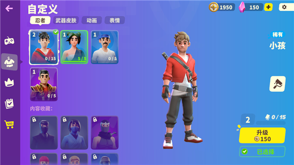 2、點擊服裝圖標可以切換不同的忍者,右邊的粉刷圖標是自定義。
