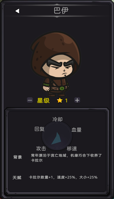 天賦:卡拉爾數量+1,速度+25%,大小+25%。