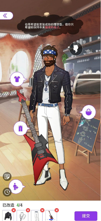 伯哥希望變裝成你的理想型,但你更希望他保持真實(shí)的搖滾風(fēng)格。這是一個(gè)考驗(yàn)?zāi)銓徝篮推肺兜奶魬?zhàn)。