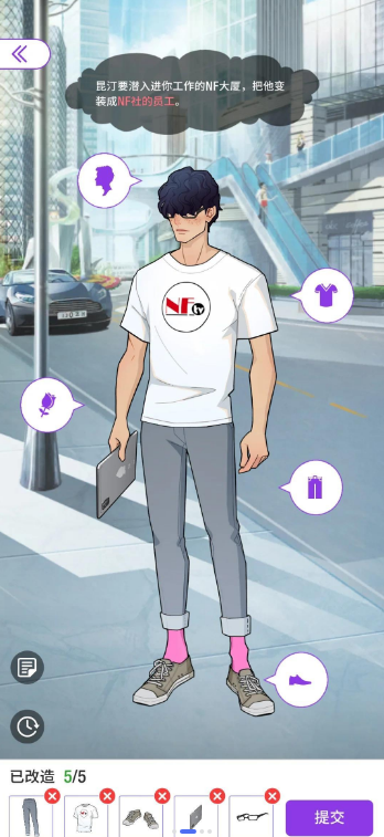 昆汀需要潛入NF大廈,變裝成員工進(jìn)行偵查。你需要為他提供所需的裝備,讓他順利完成任務(wù)。
